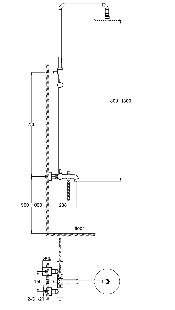 Kohlman Axel zestaw wannowo-prysznicowy z deszczownicą i wylewką chrom połysk QW277A
