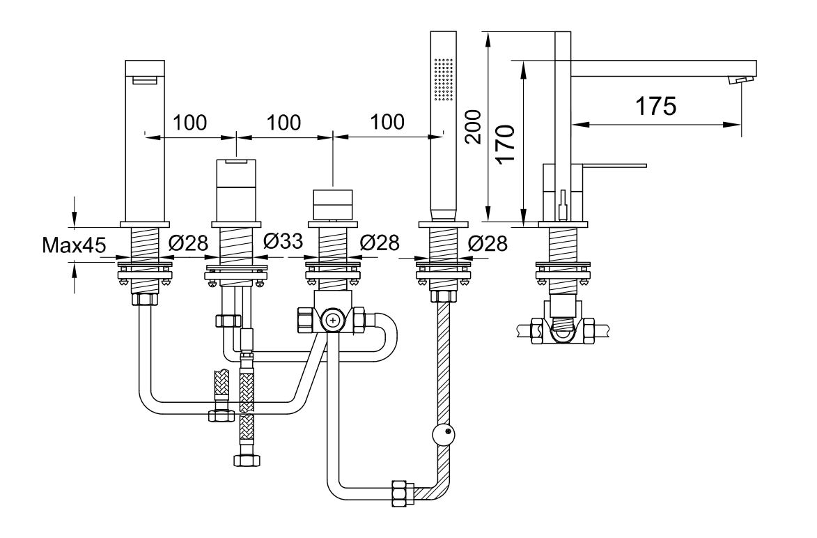 Kohlman Excelent bateria wannowa 4-otworowa chrom QB243H