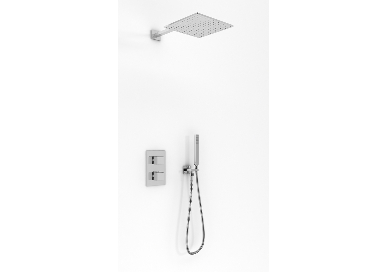 Kompletny zestaw prysznicowy ze słuchawką, deszczownicą oraz baterią podtynkową marki KOHLMAN.
