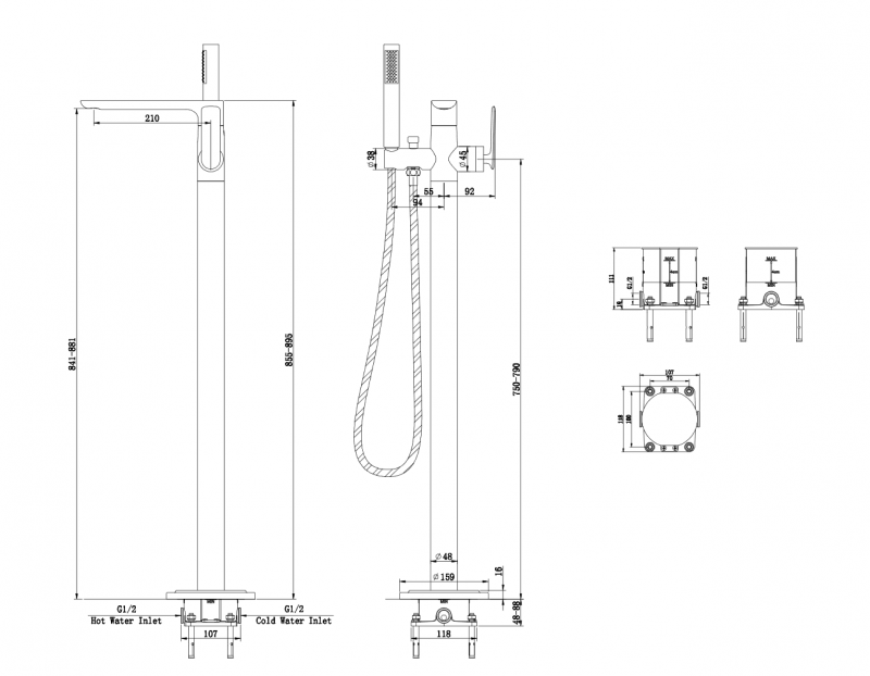 Kohlman Experience Brushed Gold bateria wannowa podłogowa wolnostojąca