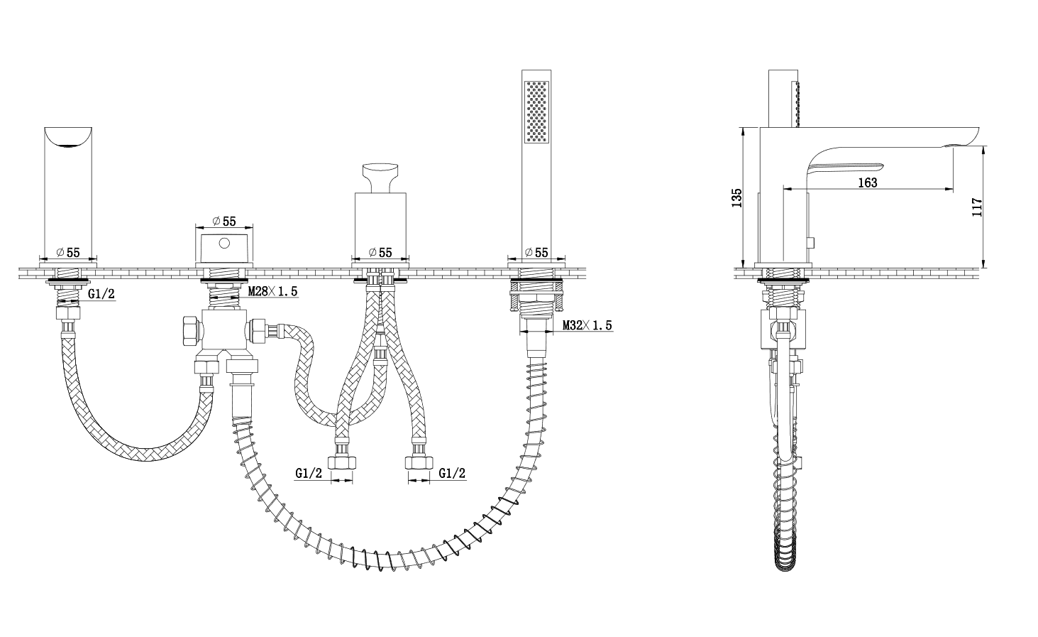 Kohlman Experience Gold bateria wannowa 4-otworowa