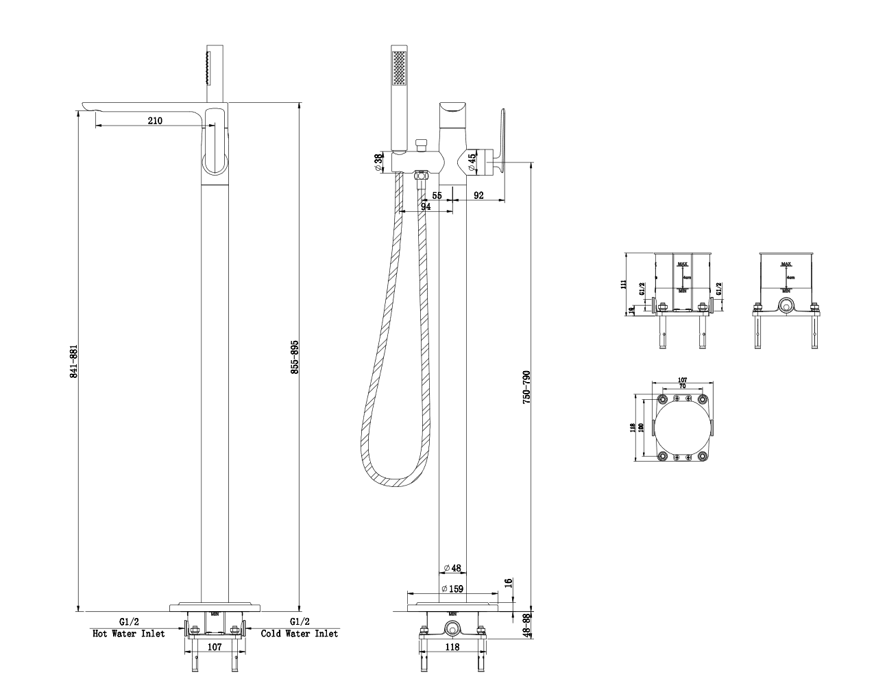 Kohlman Experience Gold bateria wannowa podłogowa wolnostojąca