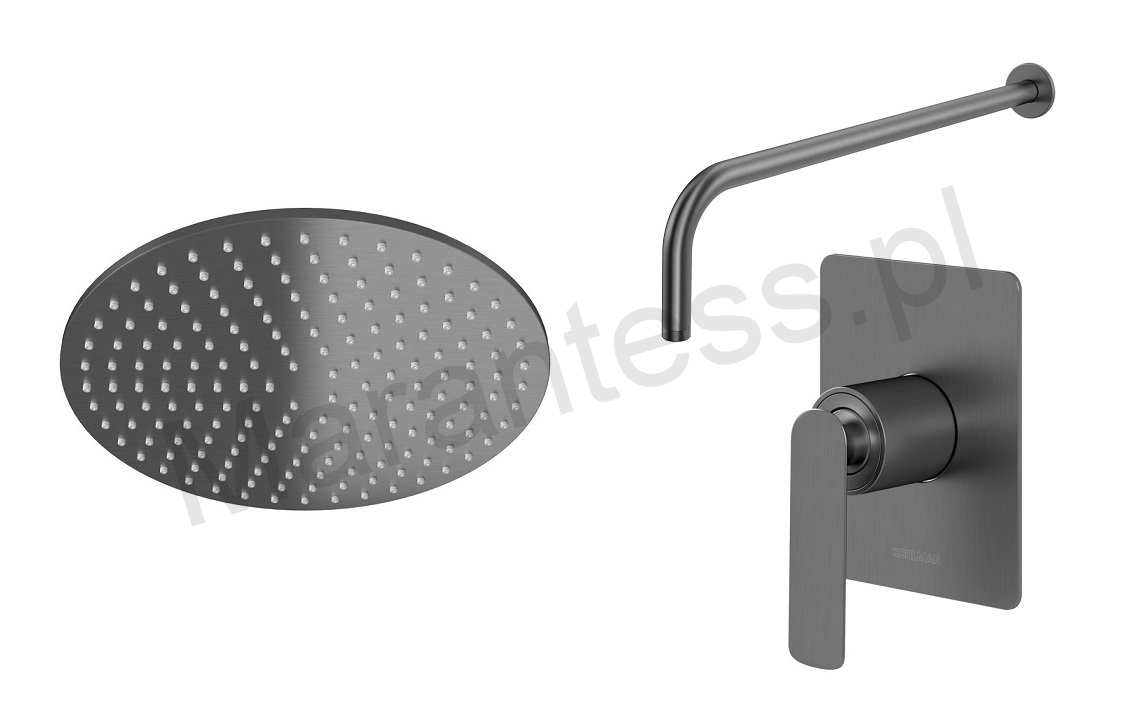 Kompletny zestaw prysznicowy z deszczownicą oraz baterią podtynkową marki KOHLMAN.
