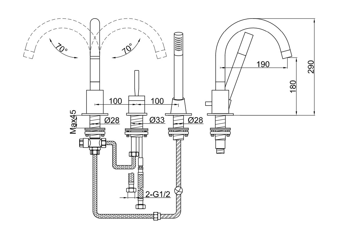 Kohlman Maxima bateria wannowa 3-otworowa chrom QB241M