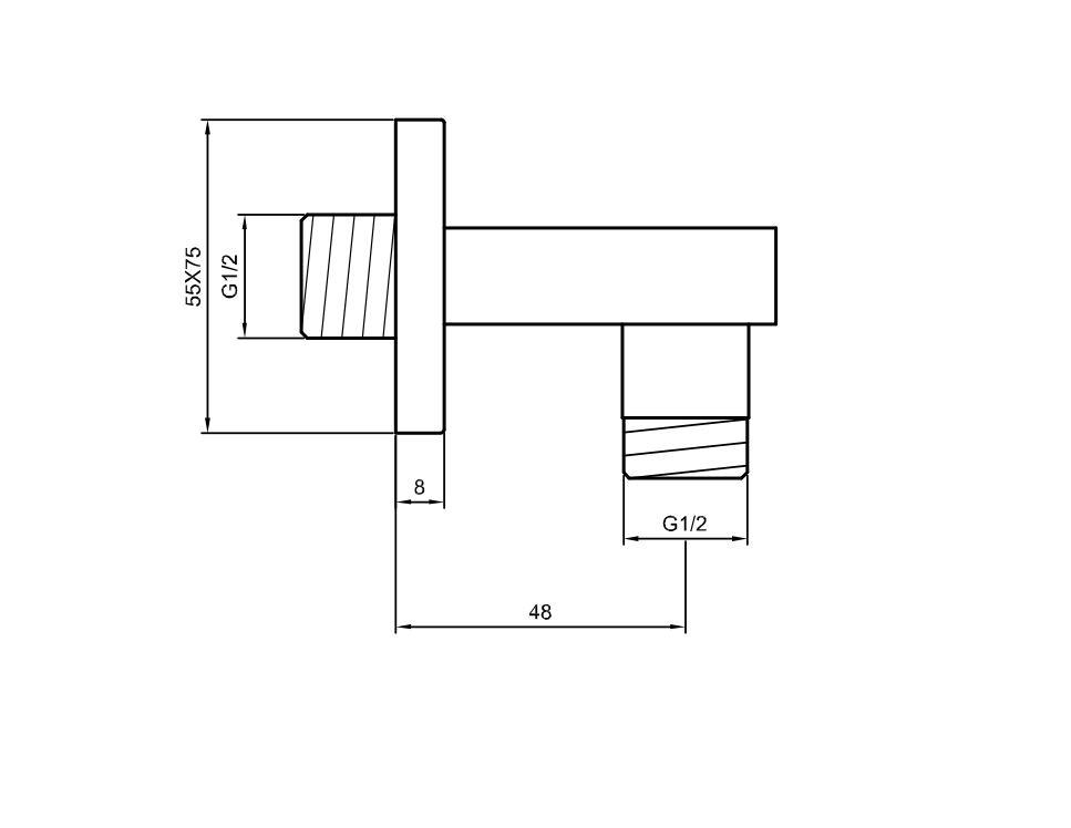 Ścienne przyłącze kątowe kwadratowe.