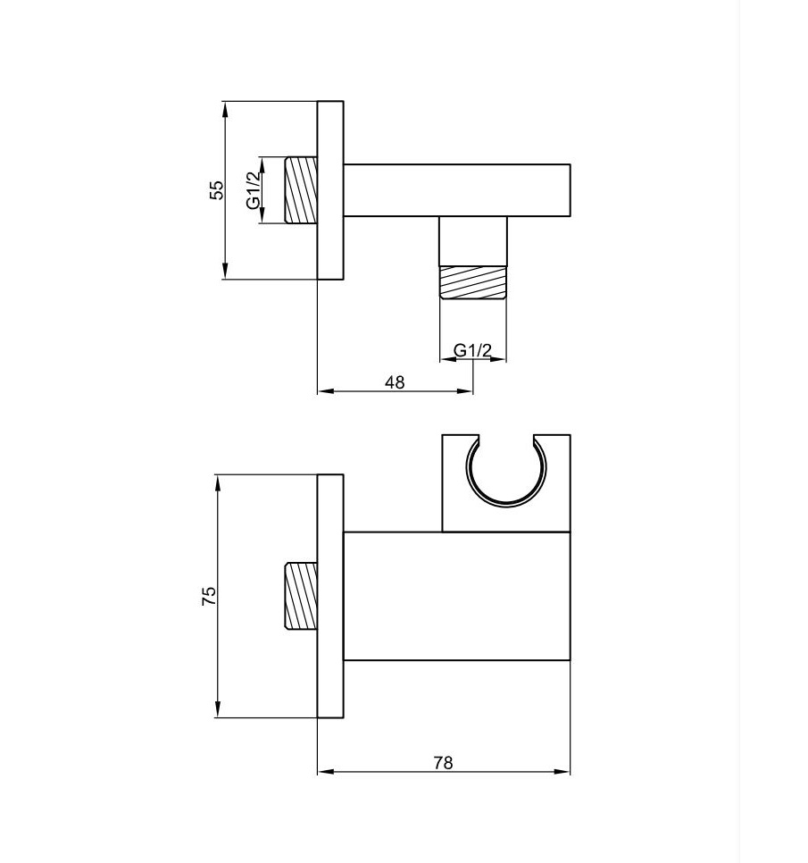 Ścienne przyłącze kątowe kwadratowe wraz z uchwytem węża/słuchawki.