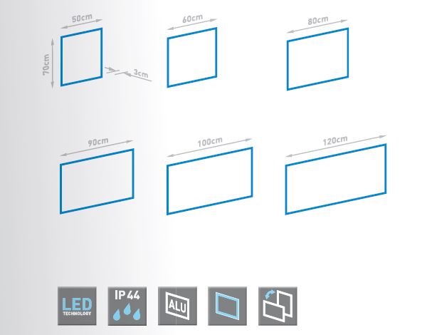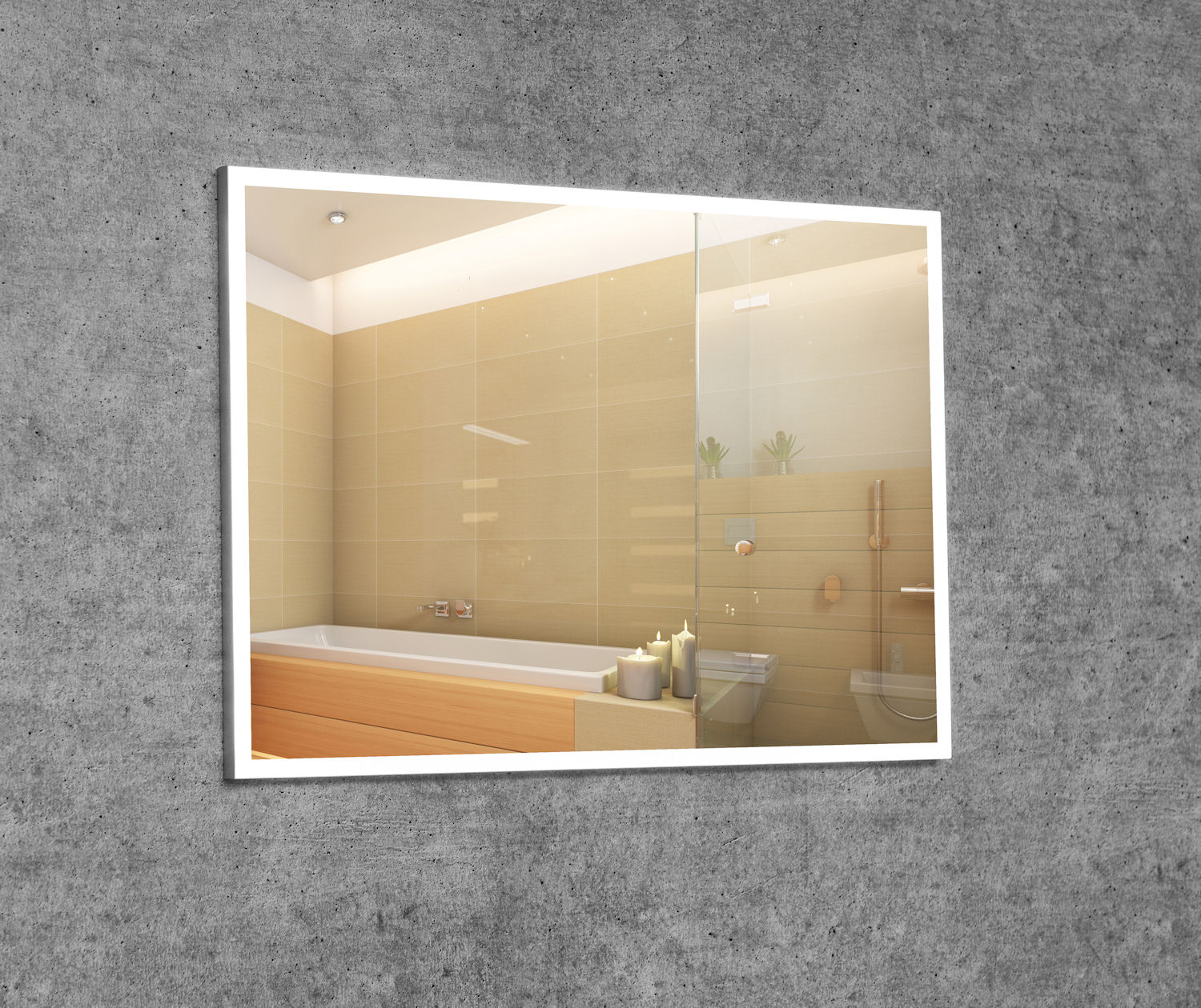 Lustro 50 X 70 cm z podświetleniem LED umieszczonym w aluminiowej ramie.
