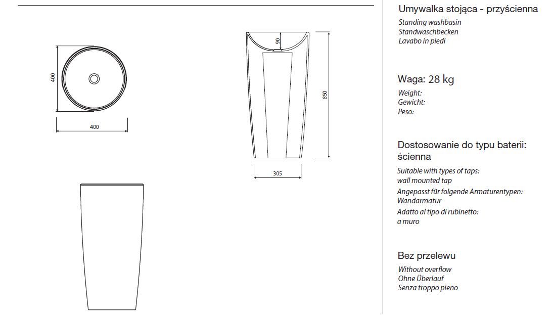 Marmorin Noemi S Umywalka wolnostojąca przyścienna