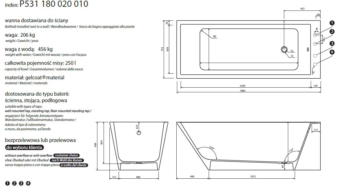 Marmorin Tebe II wanna przyścienna
