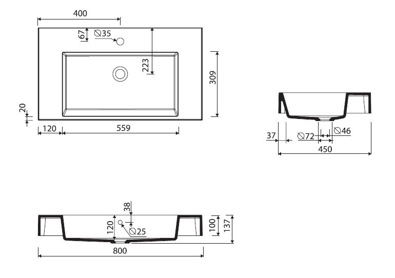 Marmorin Teo umywalka meblowa/wpuszczna w blat z otworem
