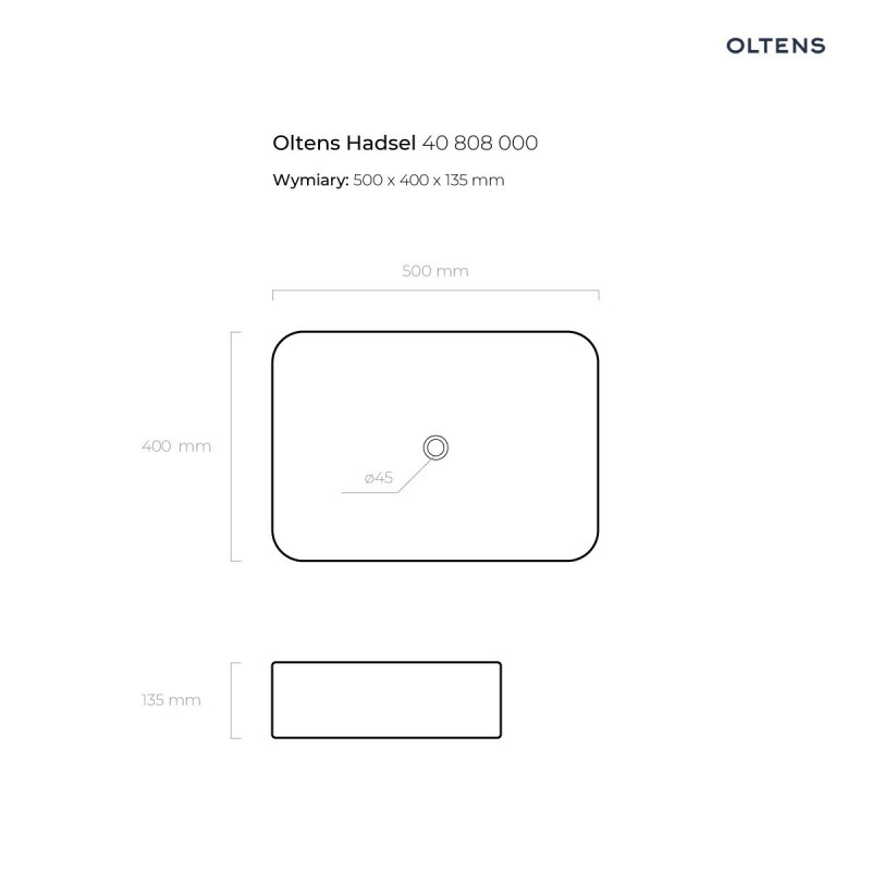 Oltens Hadsel umywalka 50x40 cm nablatowa kwadratowa biała 40308000