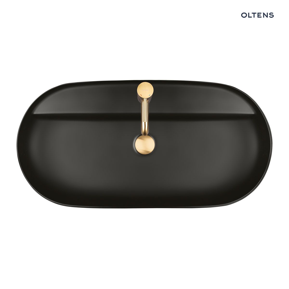 Oltens Hamnes Thin umywalka 80x40 cm stawiana na blat z otworem, z powłoką SmartClean czarny matowy 41815300