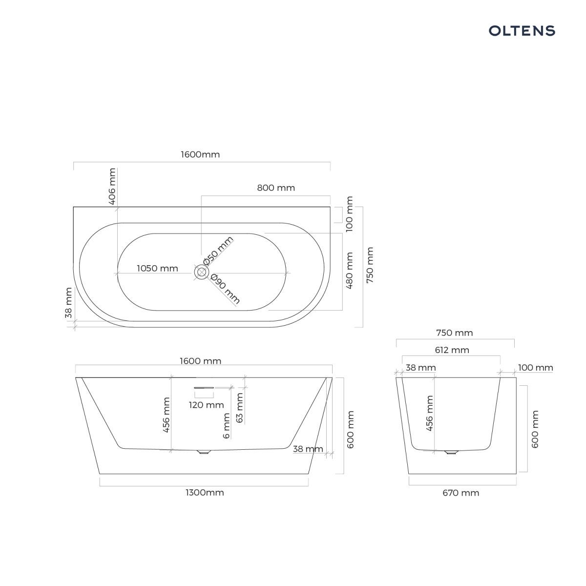 Oltens Hulda wanna wolnostojąca 160x75 cm przyścienna akryl biały połysk 12020000