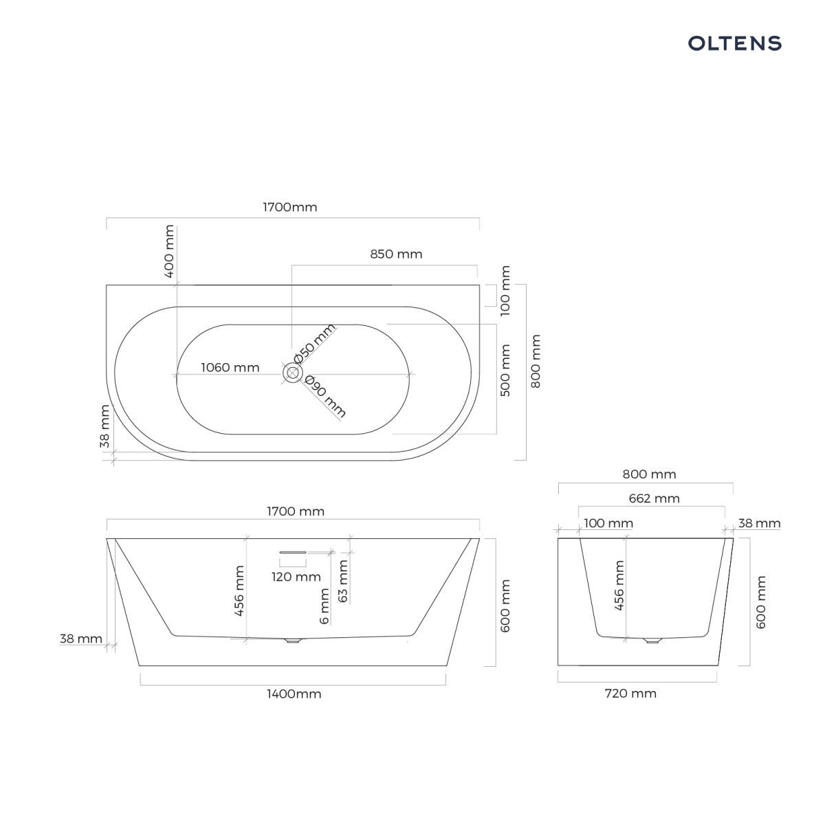 Oltens Hulda wanna wolnostojąca 170x80 cm przyścienna akryl biały połysk 12021000