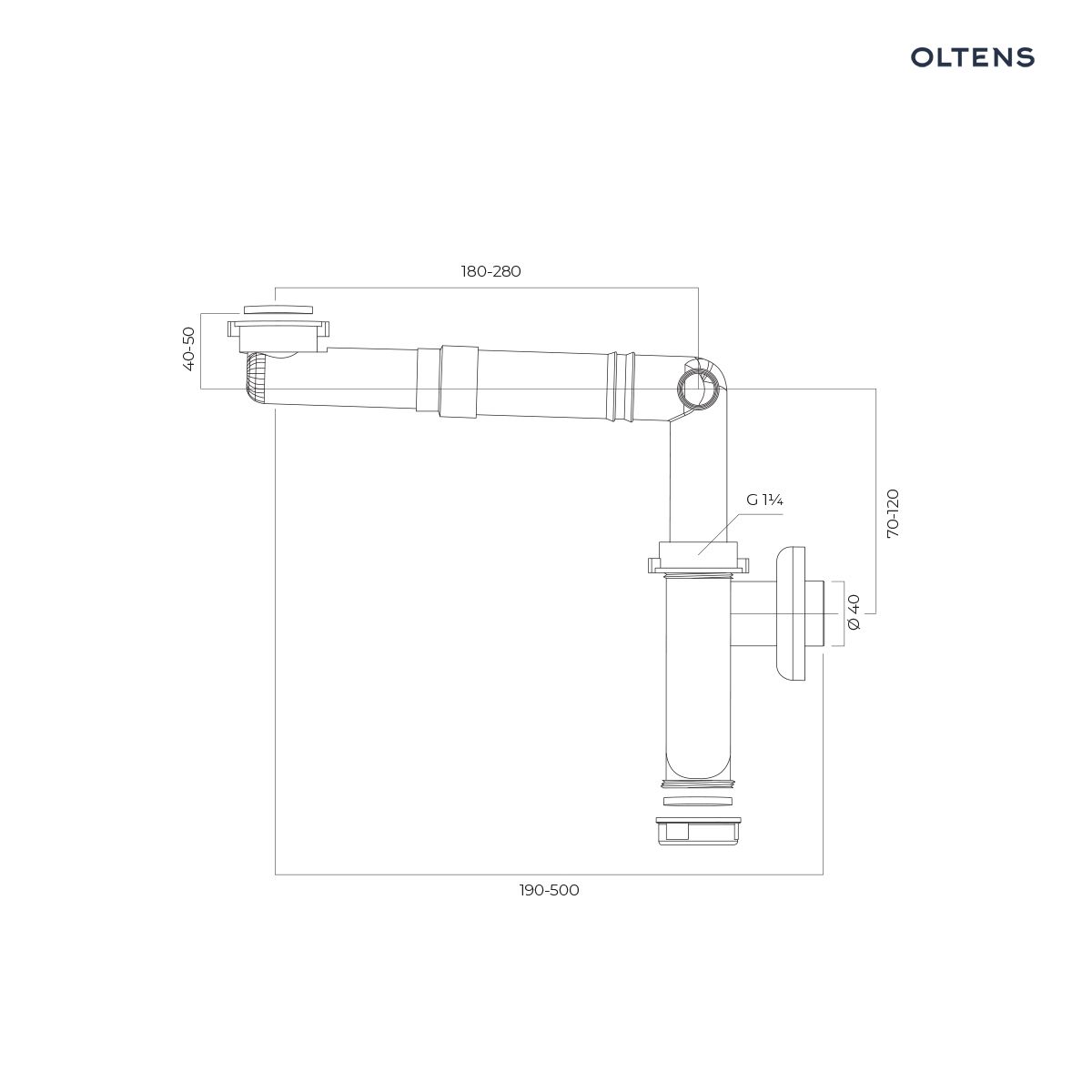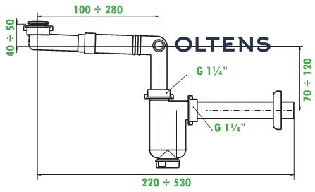- możliwość regulacji całego syfonu od 220 mm do 530 mm