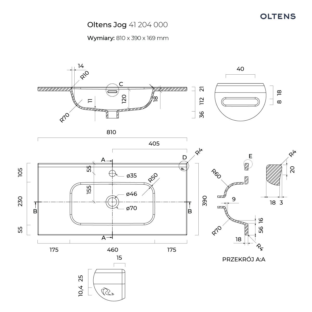 Oltens Jog szafka wisząca z umywalką 60 cm