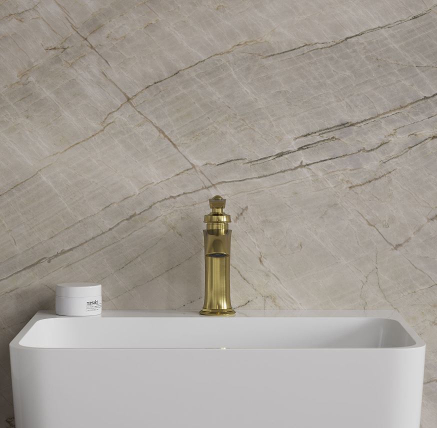 Mosiądz szczotkowany jest szlachetnym wykończeniem w odcieniu chłodnego złota i satynowej, szczotkowanej powierzchni. Powłoka została wykonana w zaawansowanej technologii PVD.