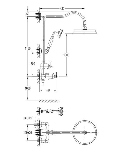 Omnires Armance System prysznicowy, natynkowy, termostatyczny.