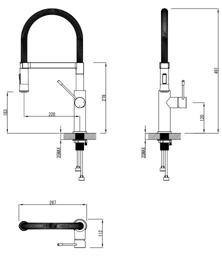 • wysokość wypływu wody 16,3 cm