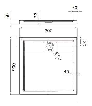 Brodzik akrylowy wzmocniony laminatem żywicznym, akrylowa płytka maskująca.