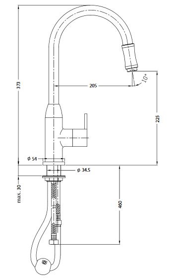 • zasięg złożonej wylewki 20 cm