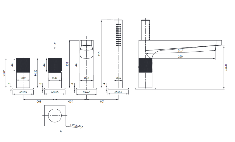 Bateria wannowa 4-otworowa