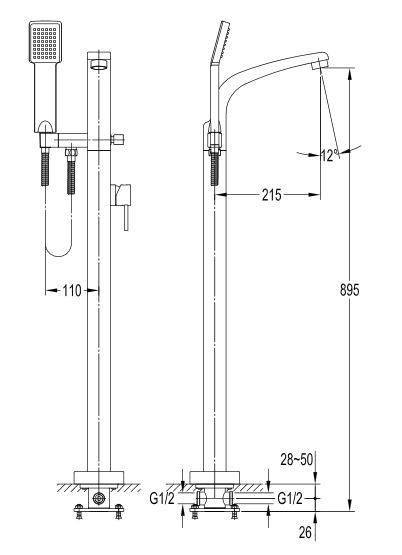 Bateria wannowa wolnostojąca kompletna:
