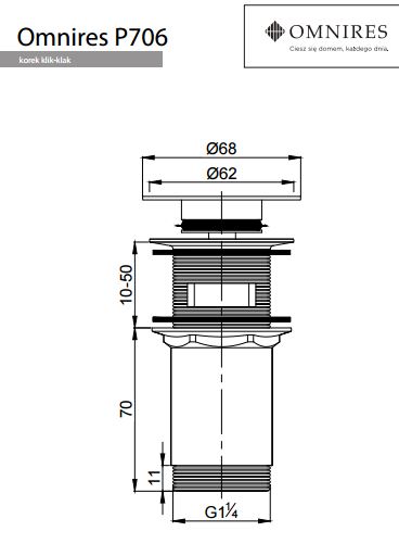 Korek klik-klak do syfonu umywalkowego, wzór cylindryczny płaski.