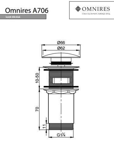 Korek klik-klak do syfonu umywalkowego, wzór cylindryczny.