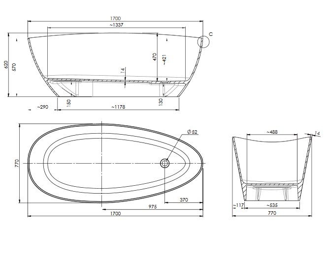 Wymiary: szerokość: 77 cm; wysokość: 62 cm; długość: 170 cm.