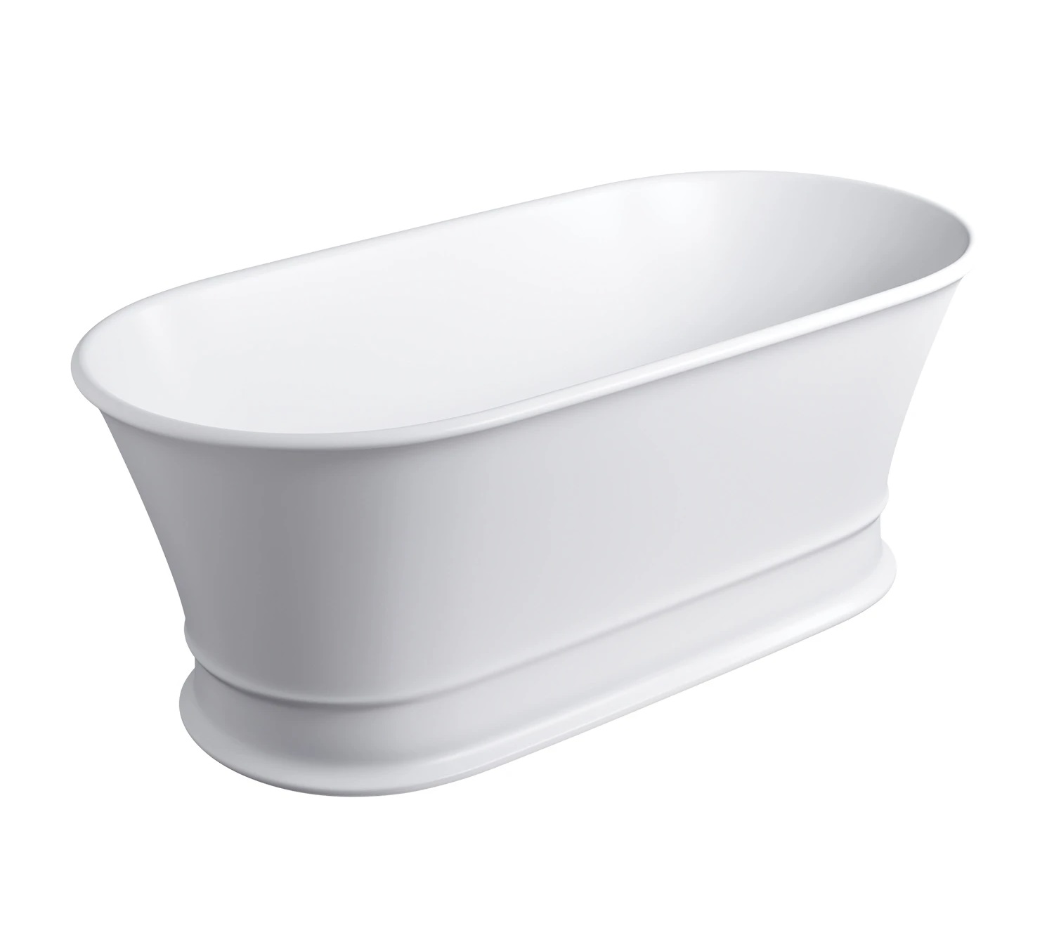 Wanna została wykonana z innowacyjnego materiału kompozytowego, którego głównym składnikiem jest skała dolomitowa. Technologia gwarantuje perfekcyjne wykonanie każdego detalu, jednocześnie zapewniając wyjątkową trwałość i odporność. Przyjemna w kontakcie ze skórą, satynowa powierzchnia wanny została wykończona w klasycznym, naturalnie odbijającym światło kolorze bieli.