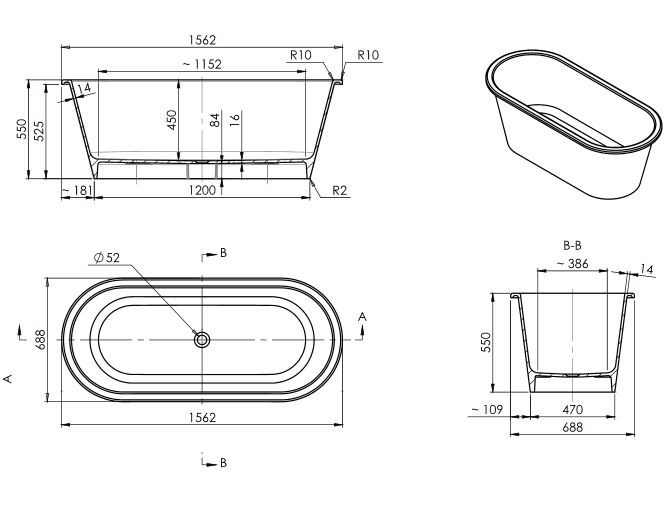 Wymiary: szerokość: 68,8 cm; wysokość: 55 cm; długość: 156,2 cm.
