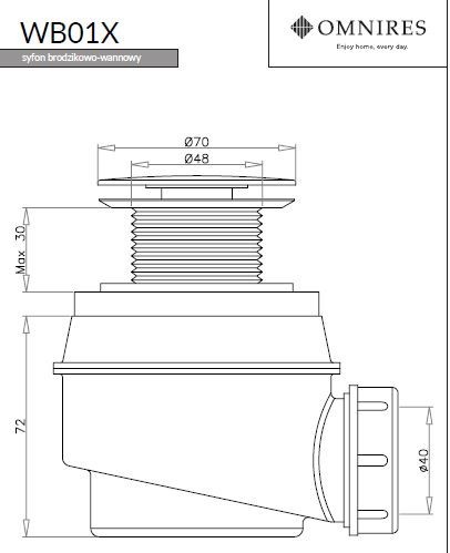 Syfon brodzikowo-wannowy, do brodzików z otworem 50 mm i wanien bez przelewu.