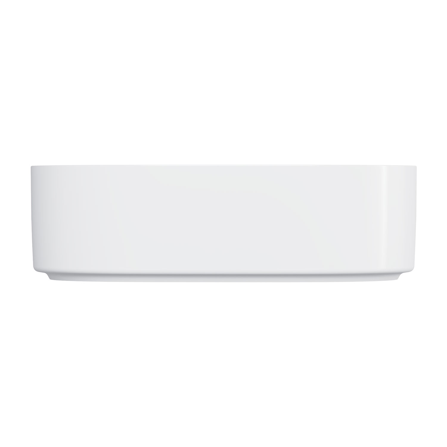 Umywalka nablatowa OMNIRES MESA wyróżnia się geometryczną formą o podłużnym kształcie i symetrycznie zaokrąglonych bokach. Idealnie proste brzegi o wyraźnym konturze nadają bryle wyjątkowo lekki i nowoczesny charakter.