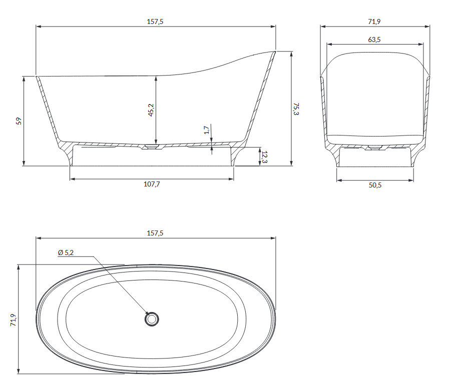 Wanna została wykonana z materiału kompozytowego (M+), którego głównym składnikiem jest skała dolomitowa. Innowacyjna technologia produkcji gwarantuje perfekcyjne wykonanie każdego detalu, jednocześnie zapewniając wyjątkową trwałość i odporność. Naturalnie odbijająca światło, połyskująca powierzchnia wanny została wykończona w klasycznym kolorze bieli.