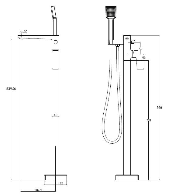 Bateria wannowa, wolnostojąca, prysznic 1-funkcyjny.