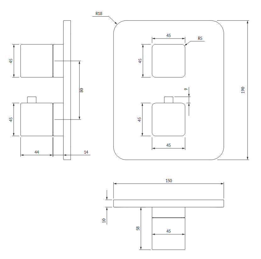 Termostatyczna bateria wannowo-prysznicowa podtynkowa.