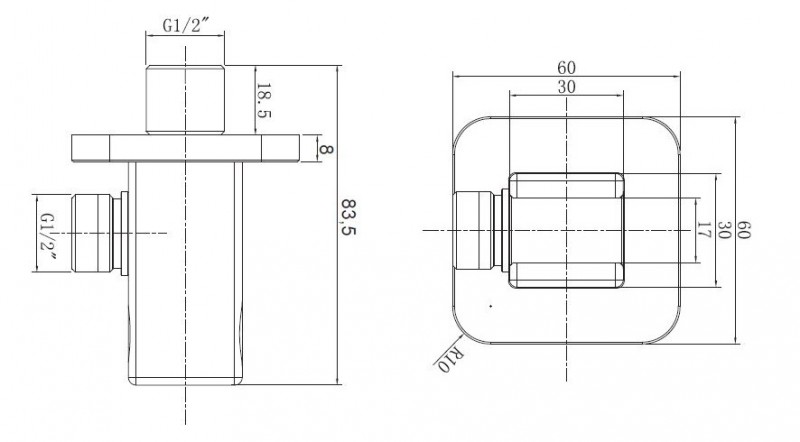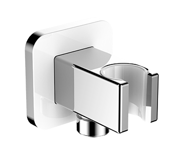 Przyłącze kątowe mosiężne z uchwytem na rączkę prysznicową.