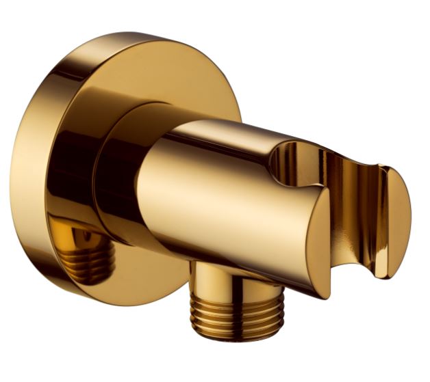 Przyłącze kątowe mosiężne z uchwytem na rączkę prysznicową.