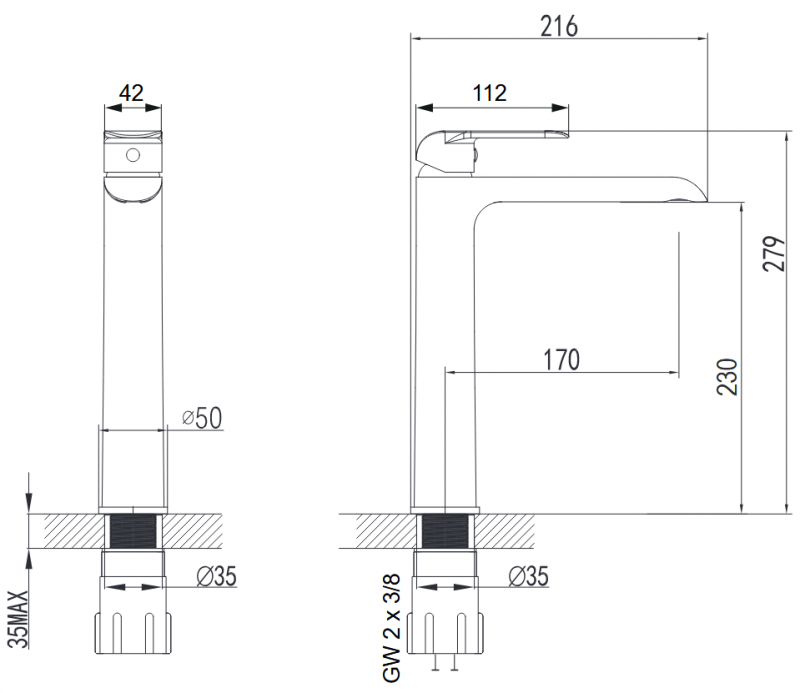 Omnires Sacramento Bateria umywalkowa wysoka, sztorcowa.