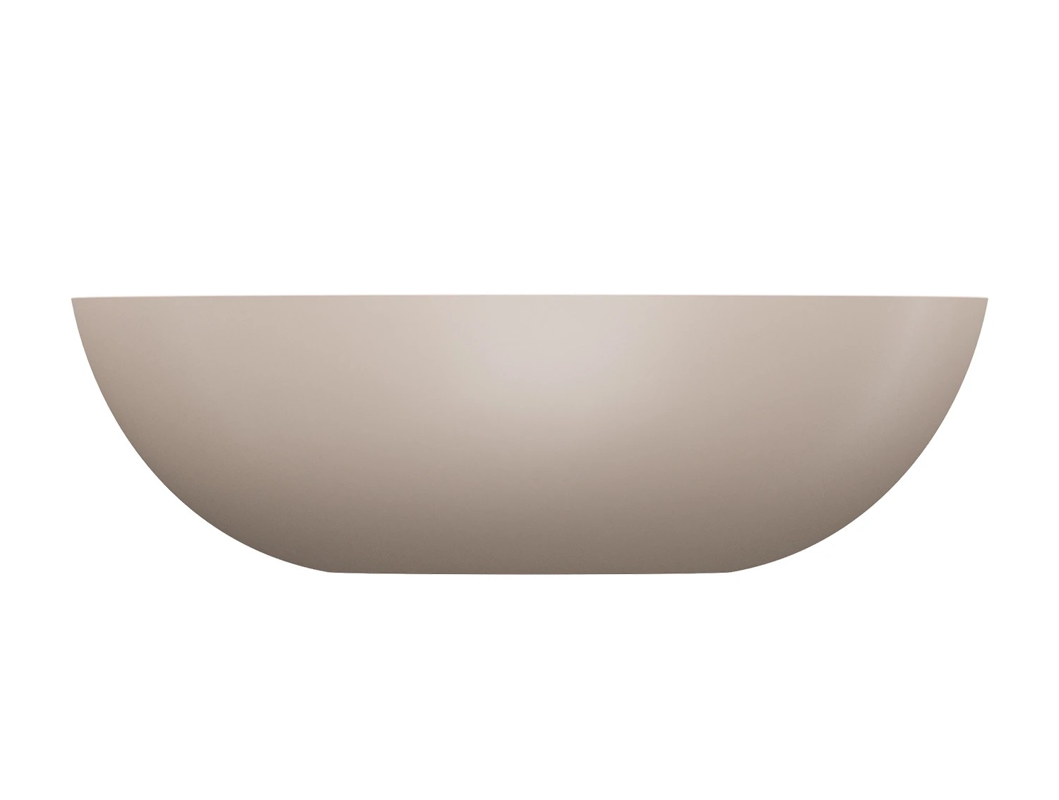 SHELL w kolorze dune beige (RAL1019) to umywalka w odcieniu stonowanego, ziemistego beżu, o aksamitnej w dotyku, matowej powierzchni.
