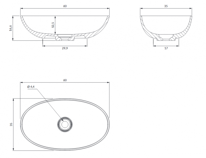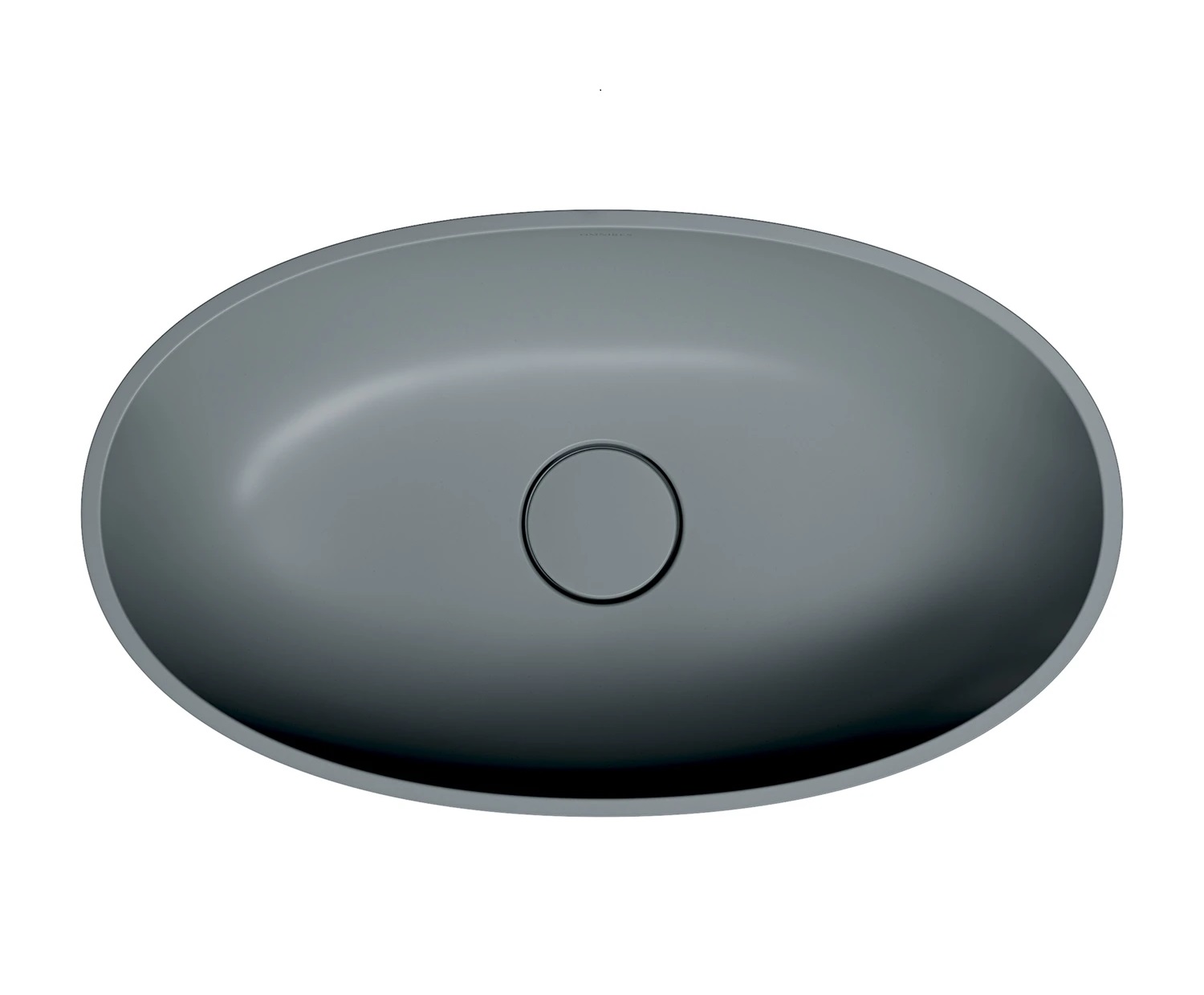 Umywalka nablatowa z kolekcji OMNIRES SHELL M+ charakteryzuje się współczesną eliptyczną formą, która miękką linią zwęża się ku podstawie. Minimalistyczna bryła wygląda lekko a zarazem solidnie, tworząc efekt wyrzeźbionego ze skały monolitu. Wewnątrz umywalki dopasowana maskownica dyskretnie zakrywa odpływ, nie zaburzając przy tym harmonijnie wyprofilowanej sylwetki.