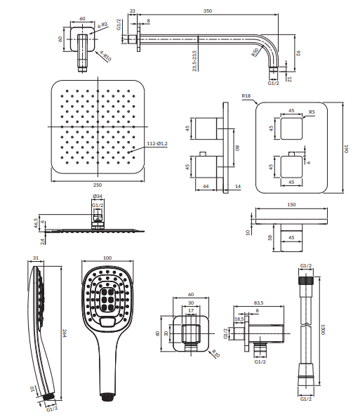 Omnires Slide Kompletny system podtynkowy termostatyczny: