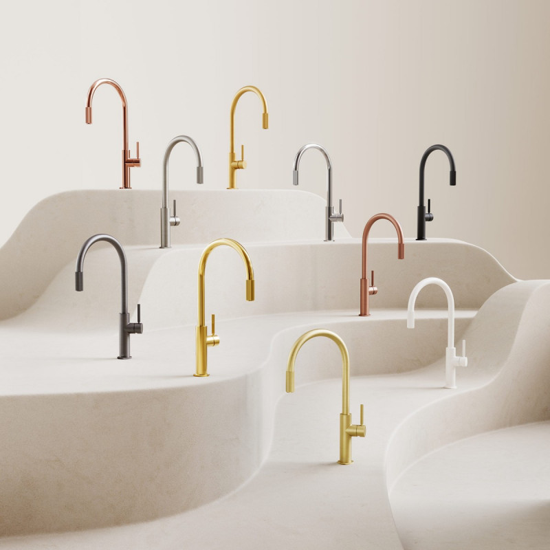 Bateria kuchenna OMNIRES SWITCH łączy minimalistyczne, oparte na wyważonych proporcjach wzornictwo z praktyczną funkcjonalnością dostarczając wodę zwykłą oraz filtrowaną. Wyraziste, precyzyjnie karbowane detale pozwalają na intuicyjne użytkowanie wskazując dwa niezależne punkty otwarcia wody: zwykłej na mieszaczu i filtrowanej na końcu wylewki - wystarczy przekręcić umieszczony na niej pierścień, by napełnić szklankę szybkim strumieniem wody pitnej o najwyższych walorach smakowych.