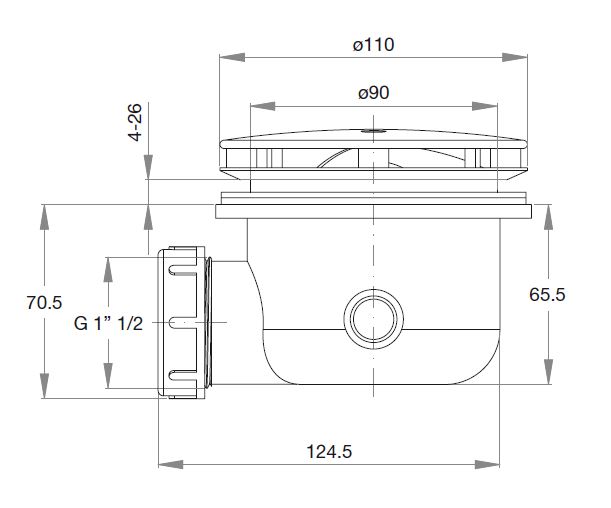 Syfon niski do brodzików prysznicowych, z otworem odpływowym ø 90 mm.