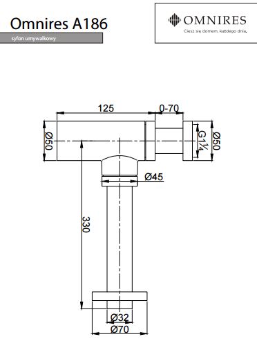 Całkowita długość: 35 cm; maksymalna wysokość całkowita: 24,5 cm (możliwość przycięcia); długość rury przyłączeniowej do kanalizacji: 27 cm.