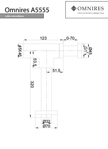 Całkowita długość: 35 cm; maksymalna wysokość całkowita: 24 cm (możliwość przycięcia); długość rury przyłączeniowej do kanalizacji: 27 cm.