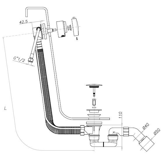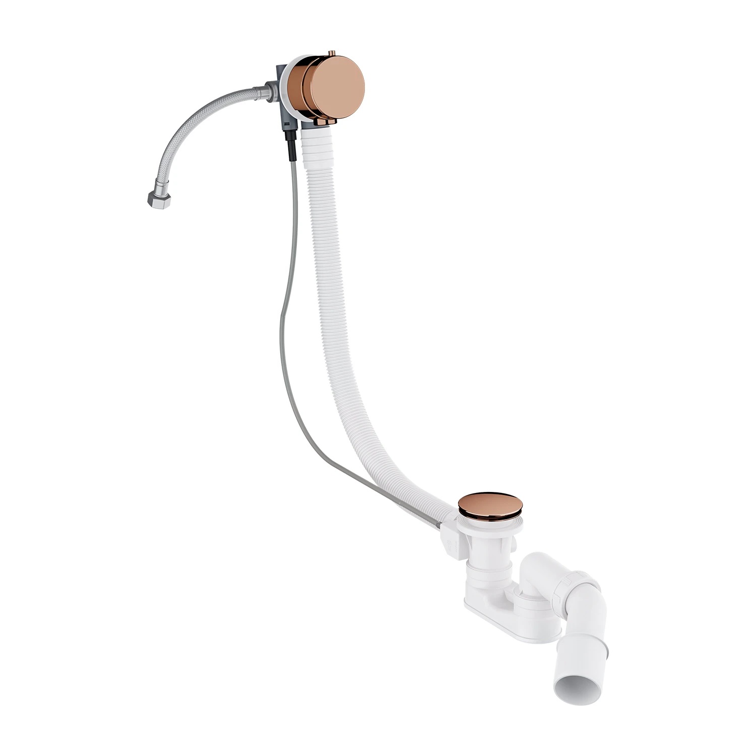 Syfon wannowy przelewowo-odpływowo-napełniający, z automatycznym korkiem.