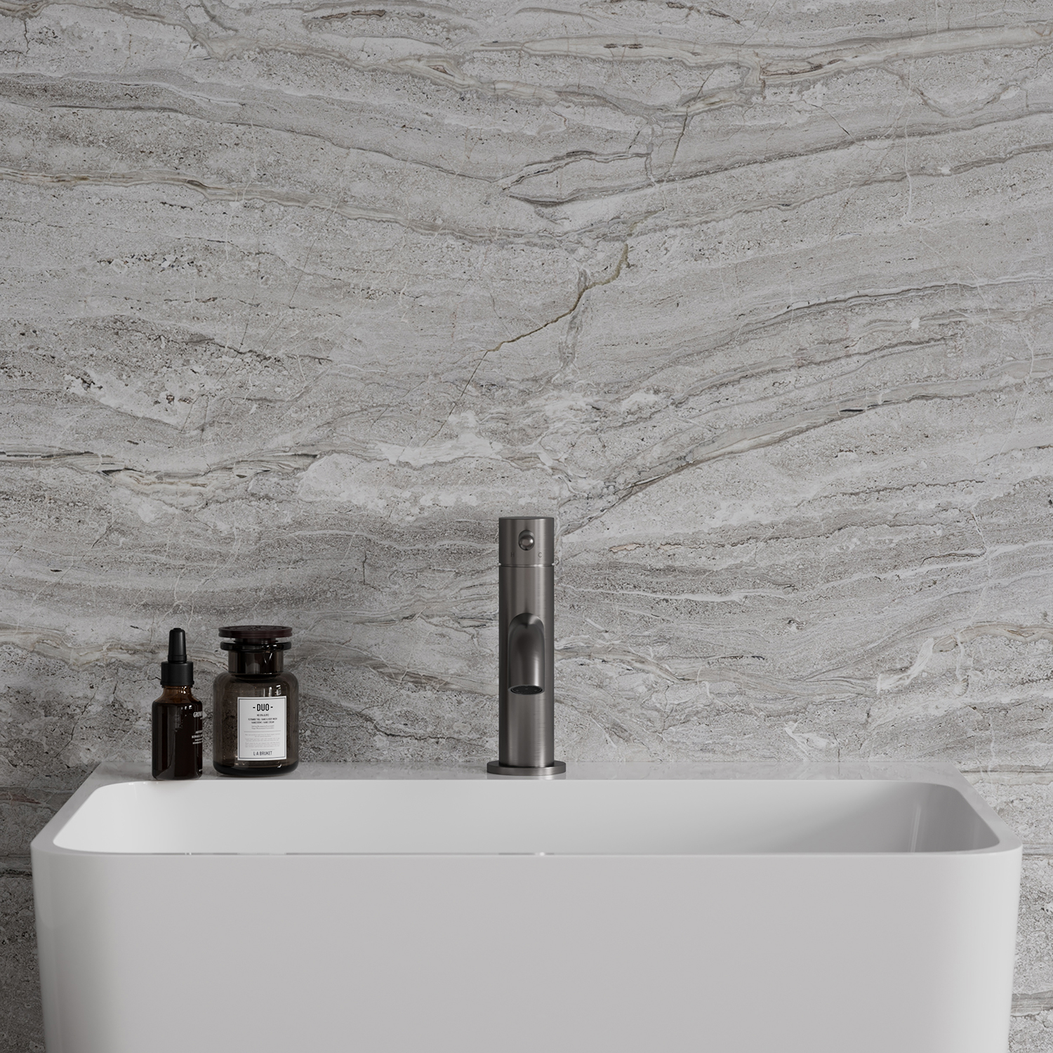 Grafit jest intrygującym wykończeniem w odcieniu metalicznej szarości, o satynowej, szczotkowanej powierzchni.