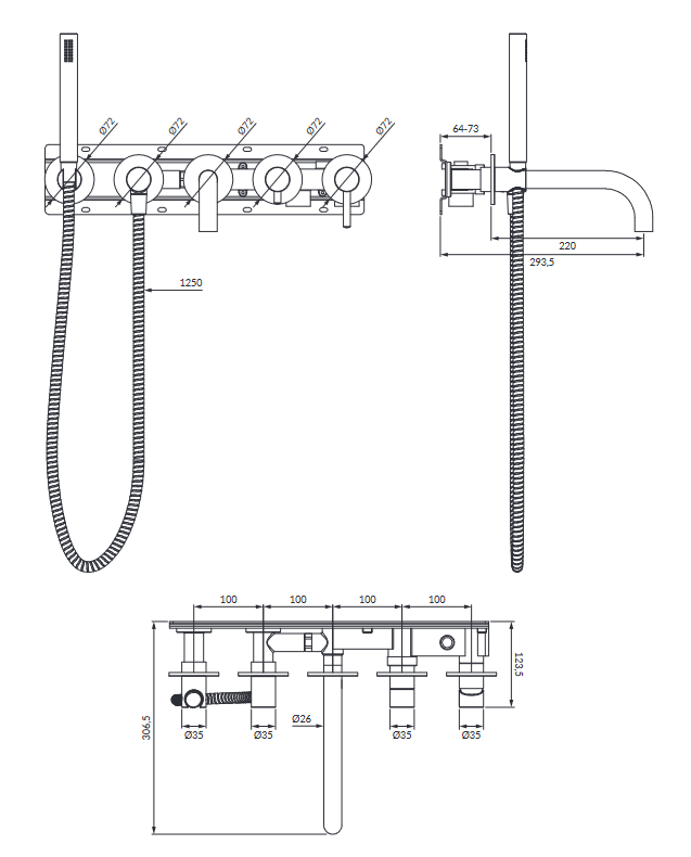 Omnires Y Bateria wannowa 5-otworowa podtynkowa